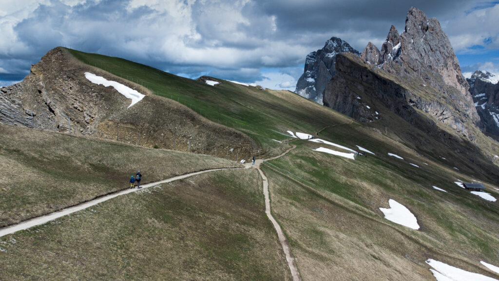 Открытый подъёмник от Col Raiser до самой вершины работает только с середины июня, а мы приехали в начале месяца — так что идти пришлось пешком.