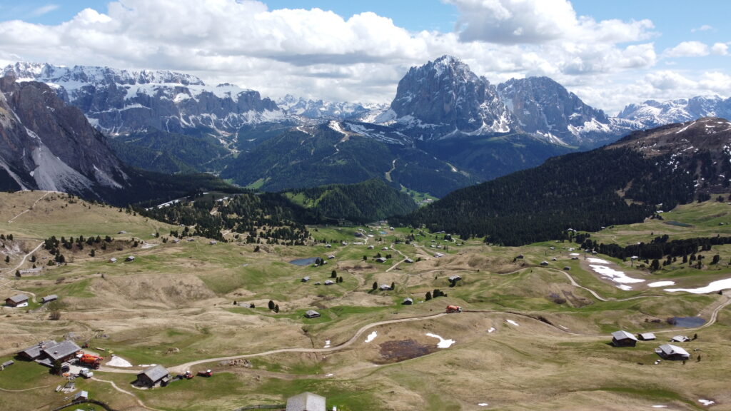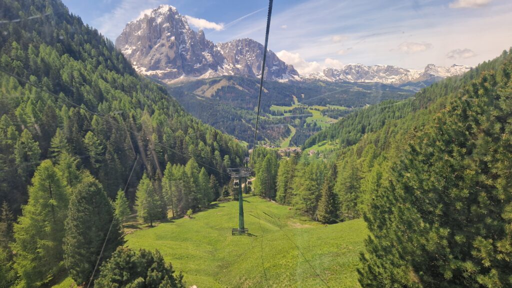 Мы планировали подняться из Ortisei, но столкнулись с проблемой — не нашли парковку. Поэтому поехали чуть дальше — к подъёмнику Col Raiser, где с парковкой всё было гораздо проще.