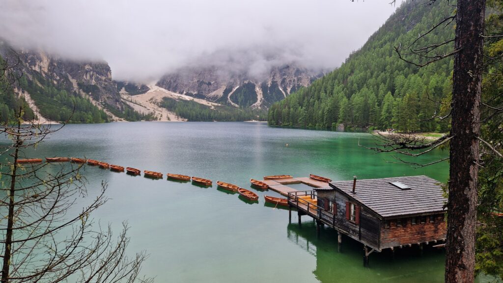 Это, пожалуй, самое «инстаграмное» озеро Доломитов. Его кристальная вода, величественные скалы и лодочный домик с выстроенными в ряд лодочками — всё это делает его любимым местом фотографов.