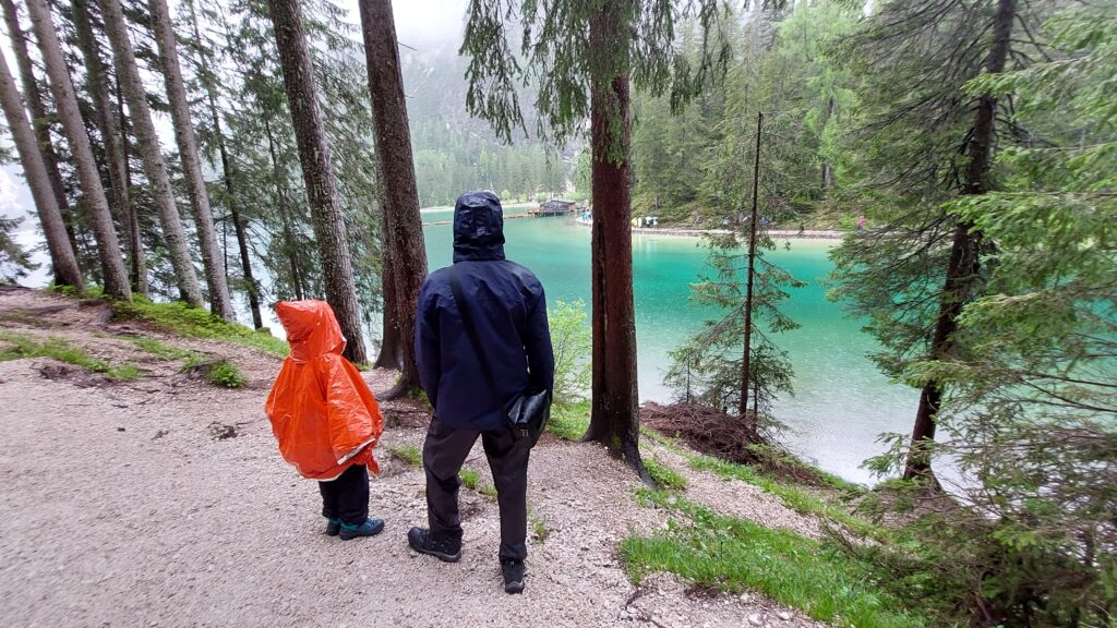 Мы выбрали P3 — было ближе и оптимально по цене. Надели дождевики и пошли к озеру. Несмотря на дождь, озеро выглядело волшебно. Но полностью обойти его не удалось — тропинки были скользкие, и мы не стали рисковать.