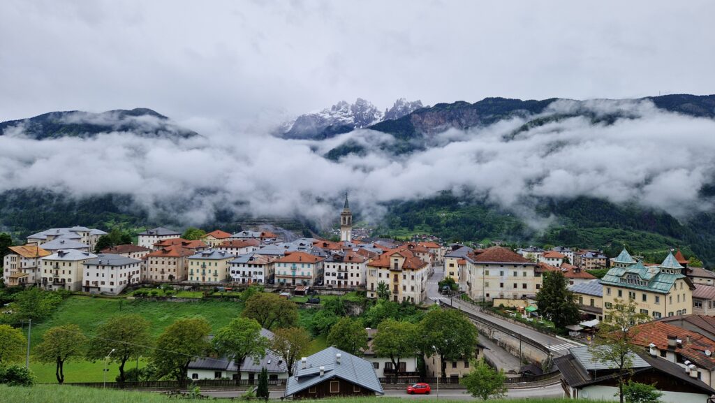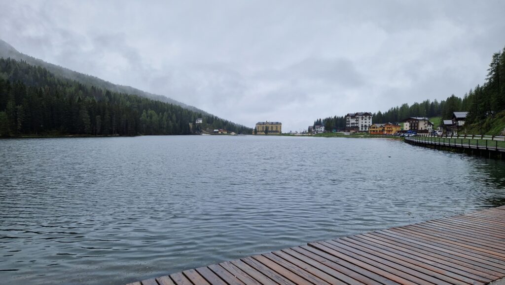 После завтрака дождь немного стих, и мы быстро всё упаковали. Сегодняшний маршрут проходил через несколько красивейших горных озёр, а ночевать мы планировали в городке Lorenzago di Cadore.